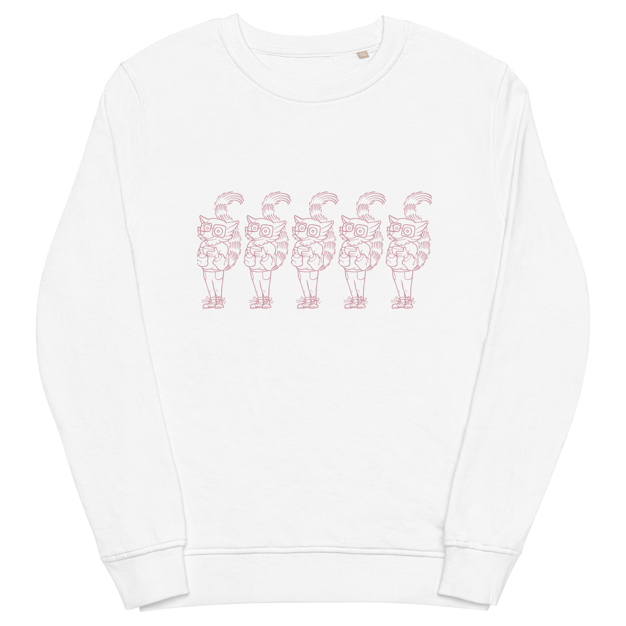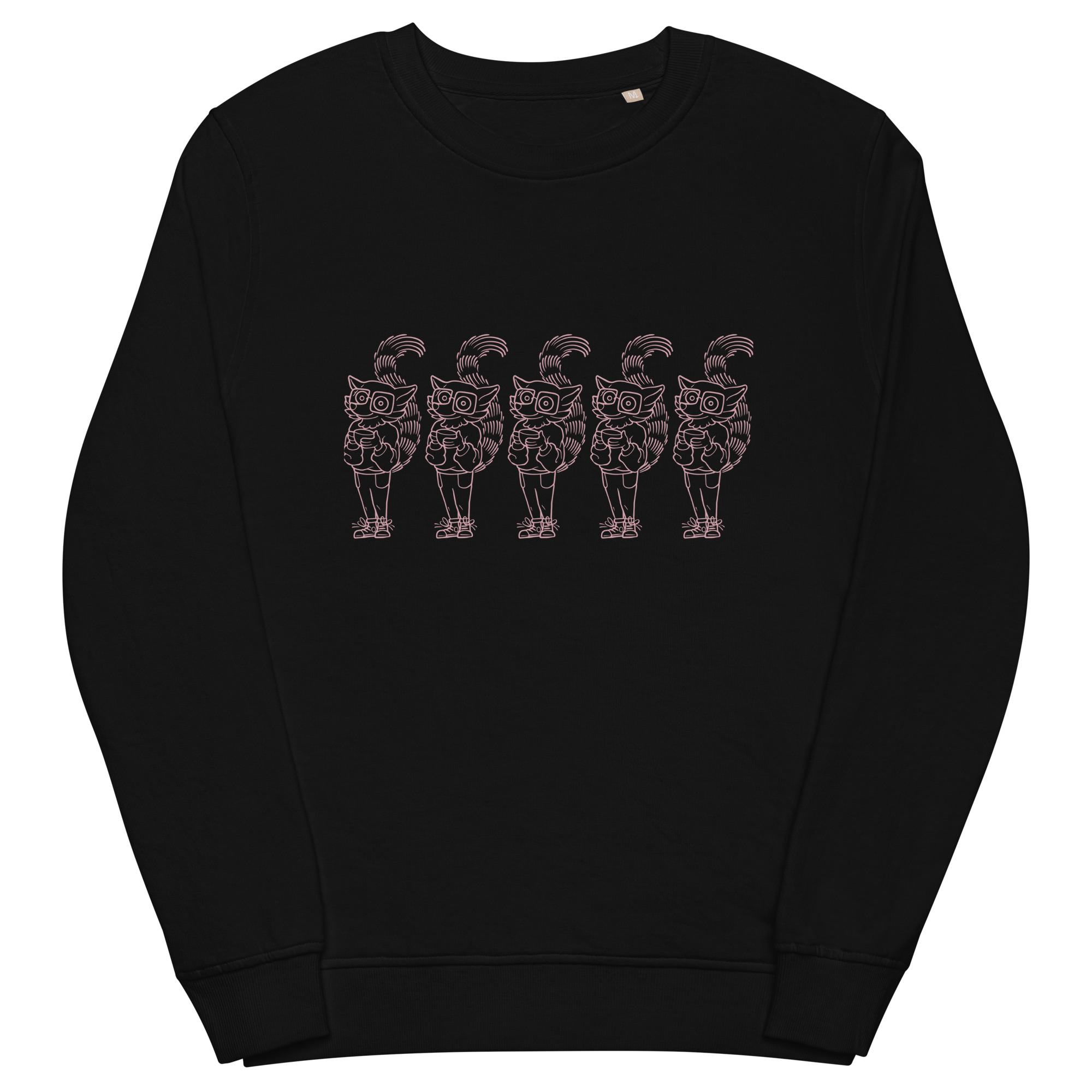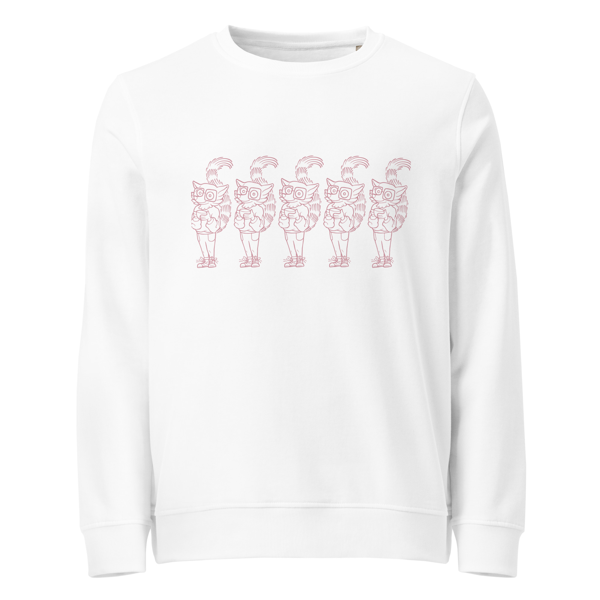 Snuggle up in this unisex sweatshirt made of organic and recycled materials. The soft and cozy feel has set in sleeves and is perfect for having a coffee on a breezy morning or a crisp fall day! You’ll think you’re seeing quintuple with a pink, repeated screen print of our favorite coffee loving lemur, Watson!